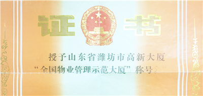 1、濰坊高新大廈物業(yè)管理項(xiàng)目被評為“全國物業(yè)管理示范大廈”(首個(gè)國優(yōu)項(xiàng)目)
