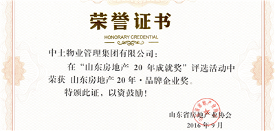 4、榮獲“山東房地產(chǎn)20年品牌企業(yè)獎(jiǎng)”
