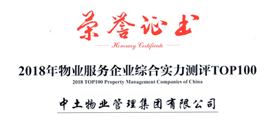 3、榮獲“2018中國物業(yè)服務(wù)百強(qiáng)企業(yè)(第37名)”稱號(hào)