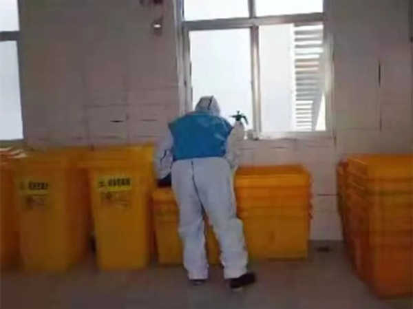 由于防疫需要,很多病人被轉(zhuǎn)院到平度市第三人民醫(yī)院,工作量翻了番,物業(yè)管理處員工每天五點起床,直到晚上七點多才能完成一天的消毒消殺工作,但是他們毅然堅守在崗位。并且,醫(yī)療垃圾的處理工作更是重中之重,他們得身穿厚重的防護(hù)衣,不斷地在醫(yī)院里穿梭,衣服被汗水浸濕,雙手被藥水泡白,臉頰被勒出深深痕跡。